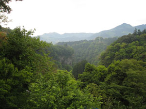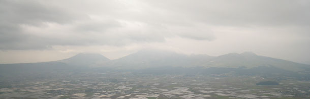 大観峯より阿蘇山方面.雲がかかっていますね.これから行こうというのに・・・. |