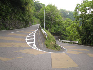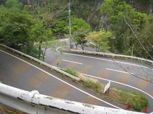 いろは坂を彷彿とさせる九十九折りの道路. |