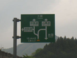 ほとんど行きと逆ルートなので説明は不要だと思いますが,広島北JCTの上りは交差していないので,中国自動車道は素直に左車線でOKです. |